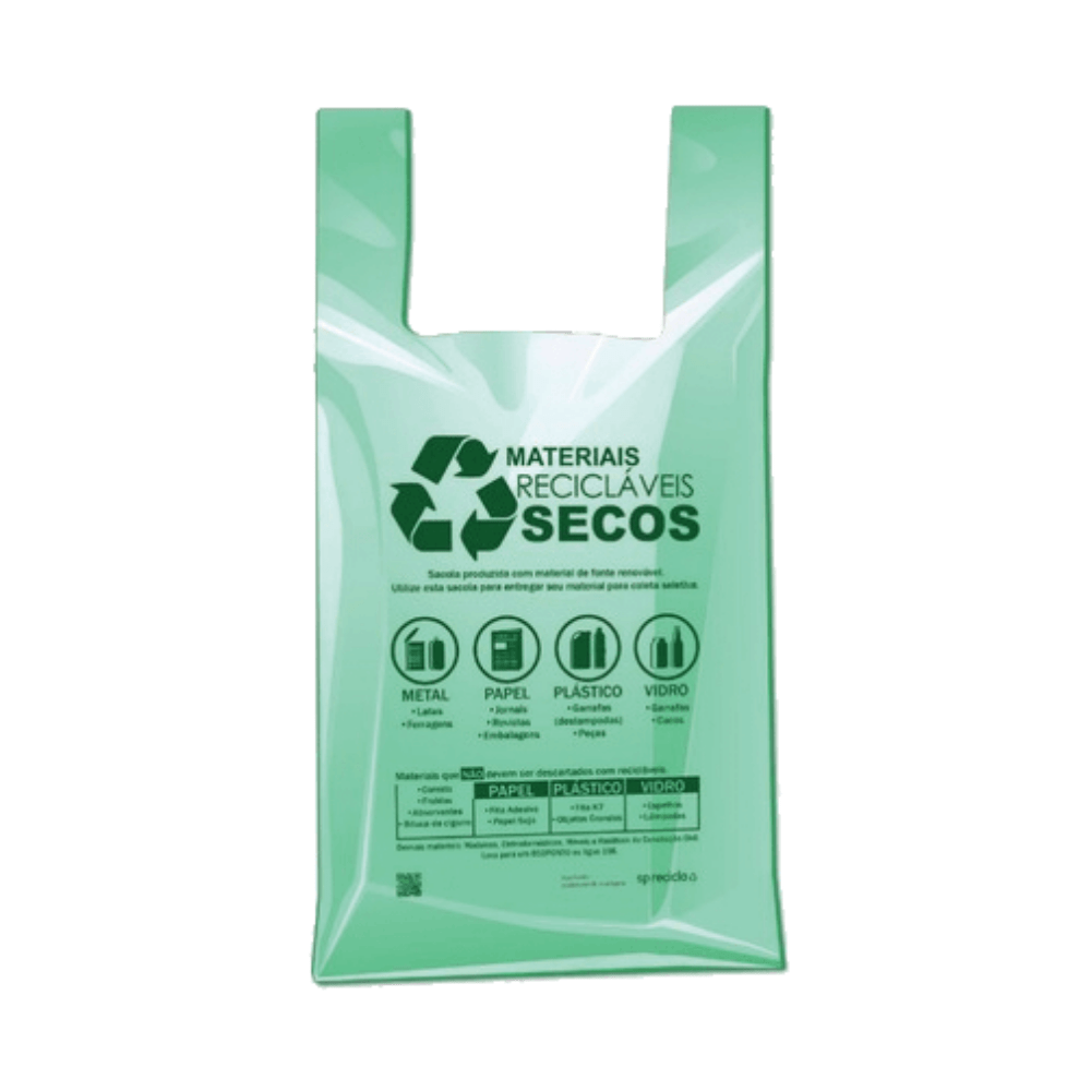 Sacolas Amarelas, Verdes e Pretas Recicladas: Sacolas ecológicas, fabricadas com materiais reciclados, perfeitas para quem busca soluções sustentáveis.
